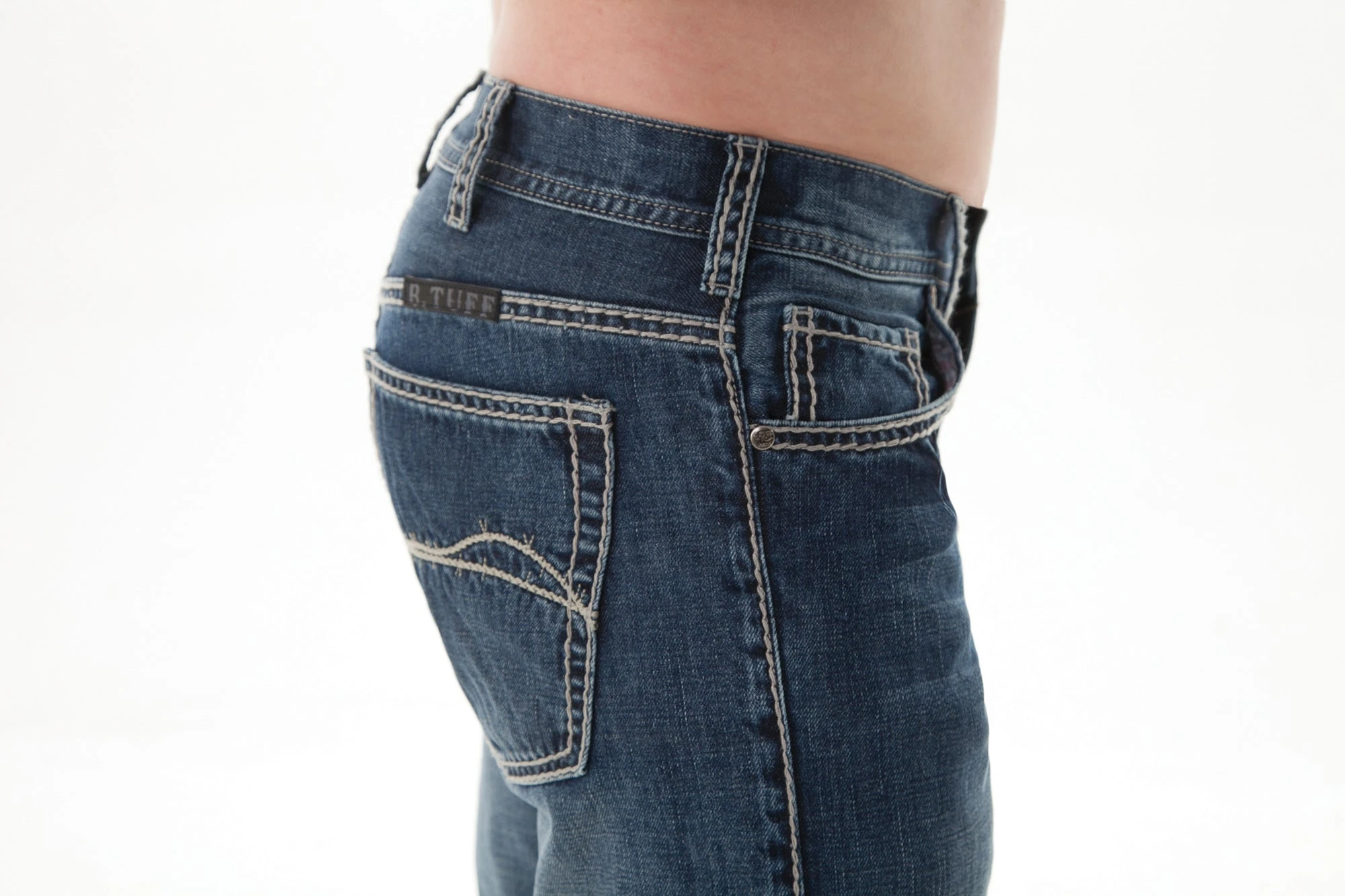 B. Real, B. Strong, B. Tuff with B.Tuff, a division of Cowgirl Tuff, inspired by the rough n tough lifestyle of a true cowboy! With their high quality craftsmanship, unbelievable fit and unique designs, B.Tuff empowers everyone to be confident. This men’s 100% cotton garment features a medium wash, hidden american flag details and smokey gray thread. These stylish jeans are sure to become one of your new, everyday favorites!