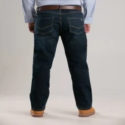 Berne Mens Dark Wash Cotton Blend Highland Flex Bootcut Jeans