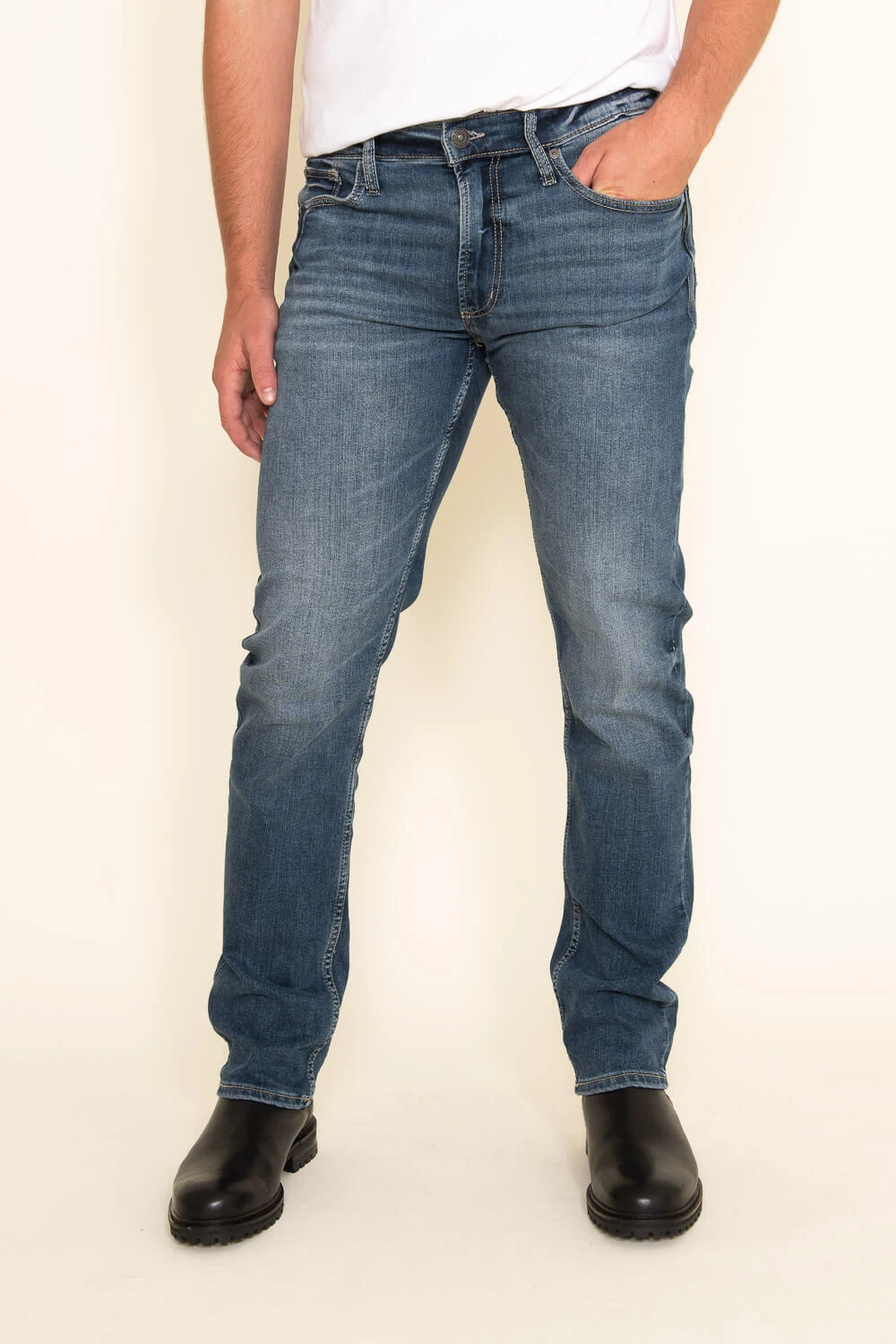 Featuring a medium wash, tapered leg fit, and comfortable stretch, these Silver Jeans Eddie Relaxed Fit Tapered Jeans for Men are awesome for year-round wear! Complete the look with a basic tee and your favorite shoes.