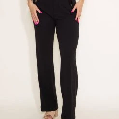Boom Boom Jeans Belted Trouser Pants For Women In Black | V22926Z-BLACK