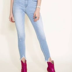 Cello High Rise Distress Fray Hem Skinny Jeans For Women | WV77101DKD-1