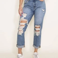 Eunina Frankie Mid Rise Destructed Jeans For Women | E87059WAS