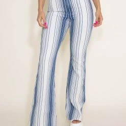 Cello High Rise Stripe Super Flare Jeans For Women In White | WV38225DK