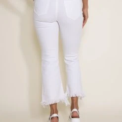 Cello High Rise Cropped Fray Hem Flare Jeans For Women In White | WV38744WHT