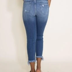 Cello Distressed Cropped Fray Bottom Skinny Jeans For Women | WV74422ML2